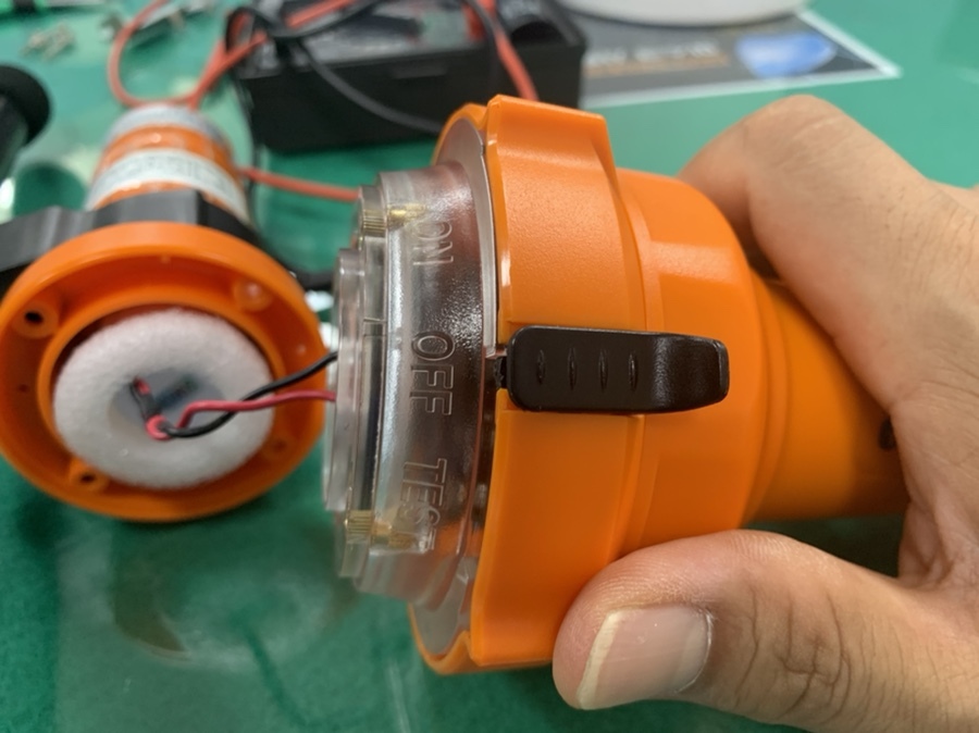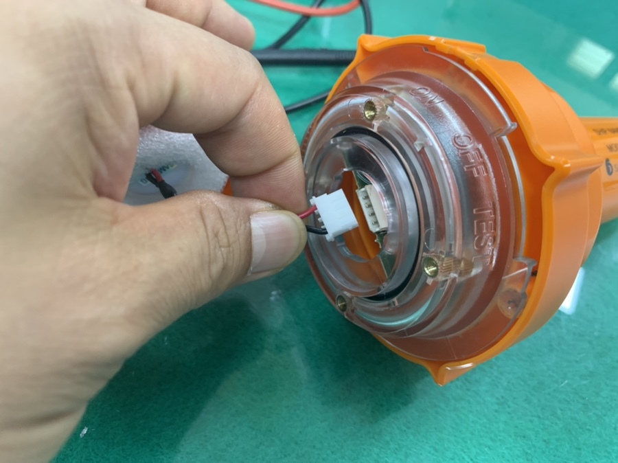 배터리 연결 후 시험(TEST)모드로 마그네틱 스위치를 돌리니까 LED가 잘 작동한다.