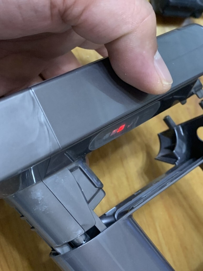 총 나사 3개를 풀고 난 후 배터리 팩을 잡고 아래로 당기면 아래 사진처럼 청소기 본체와 분리가 된다.