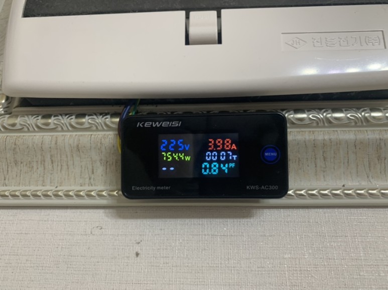 - 현재 225V가 공급되고 있고, 현재 사용전류는 3.98A
