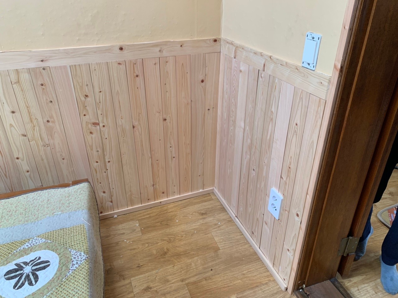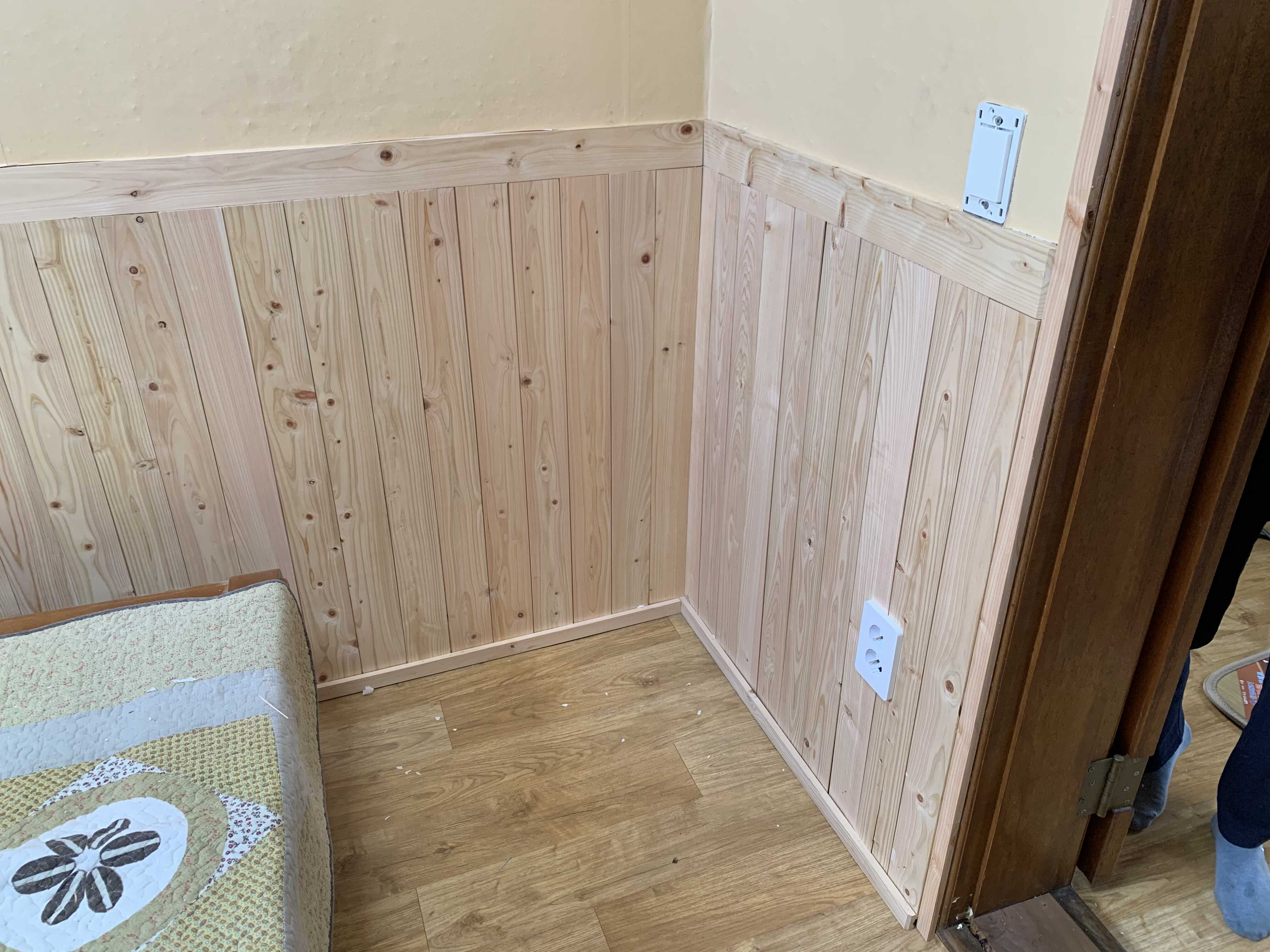 벽: 허리높이 루바 마감 & 벽지 시공(벽지는 마눌님이 시공했습니다.)