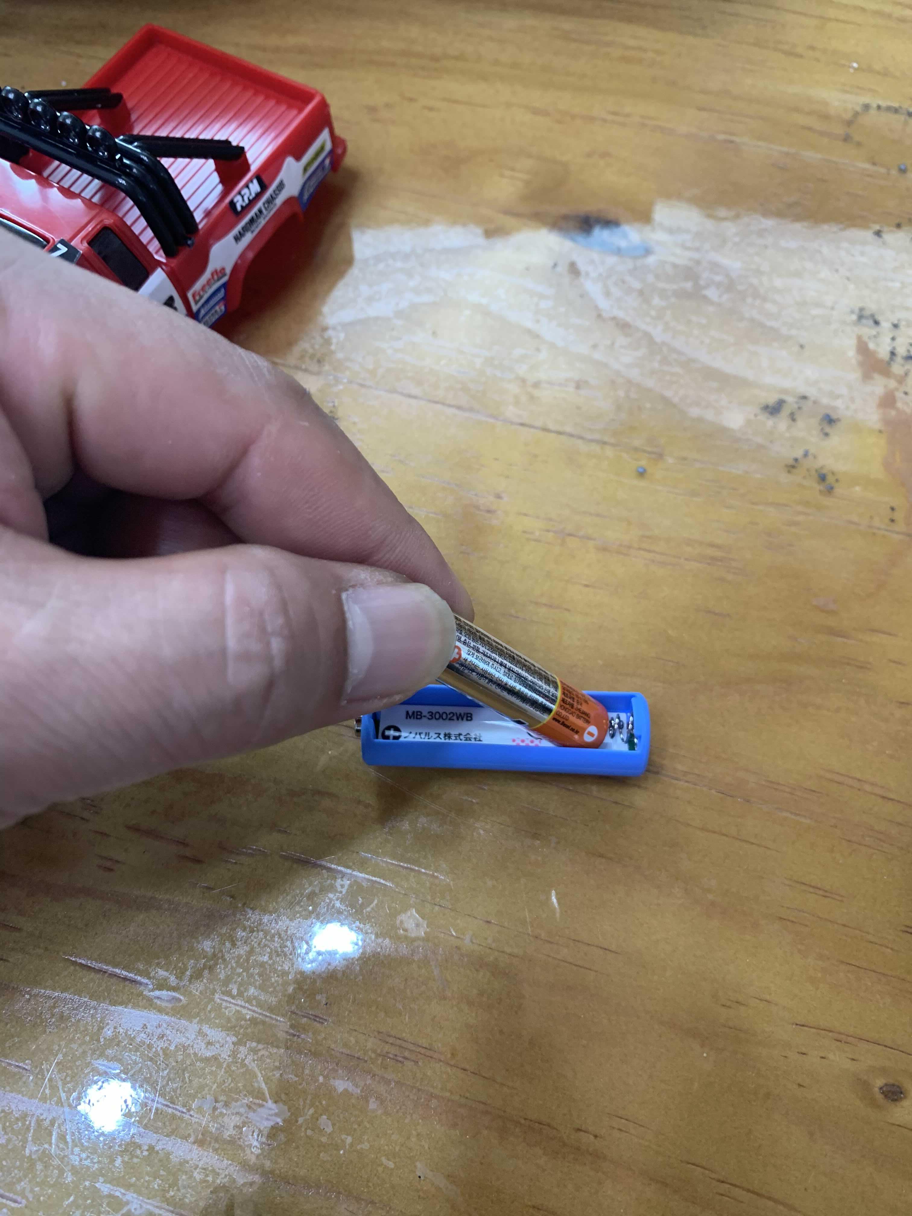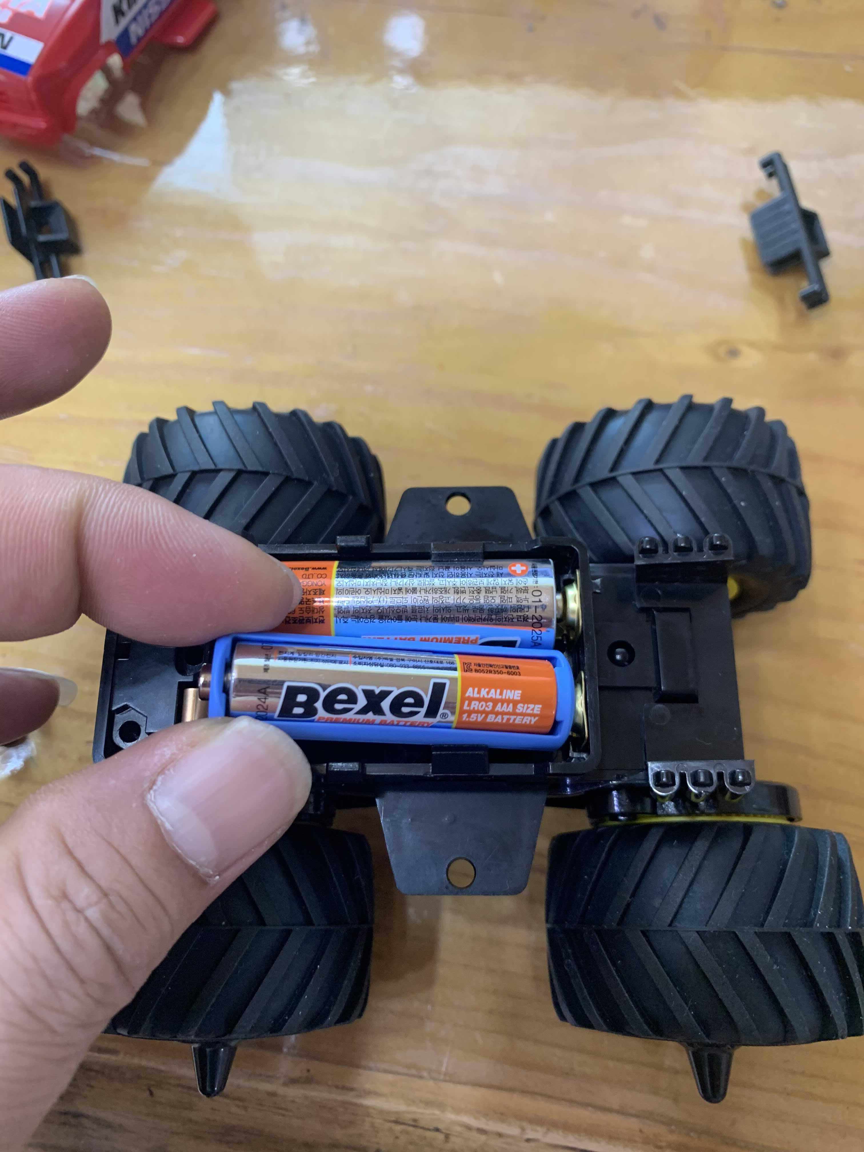 스위치를 켜면 작동하는 자동차에 마비 건전지를 넣었더니 휴대폰으로 가다 서다을 반복 할수 있었다