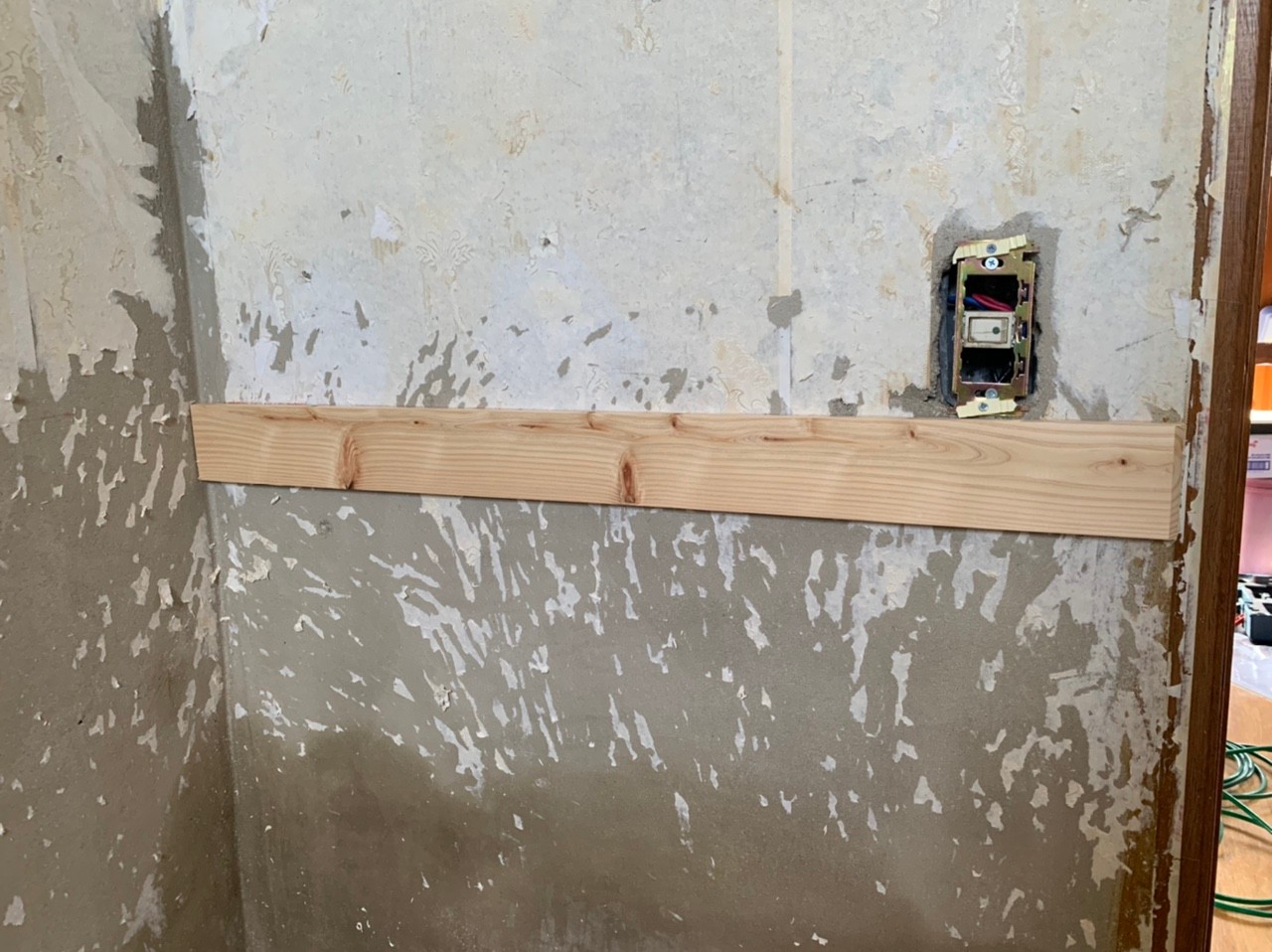 수평선 아래로 편백루바를 세로모양으로 돌리고, 윗부분은 벽지를 처리할 예정인데