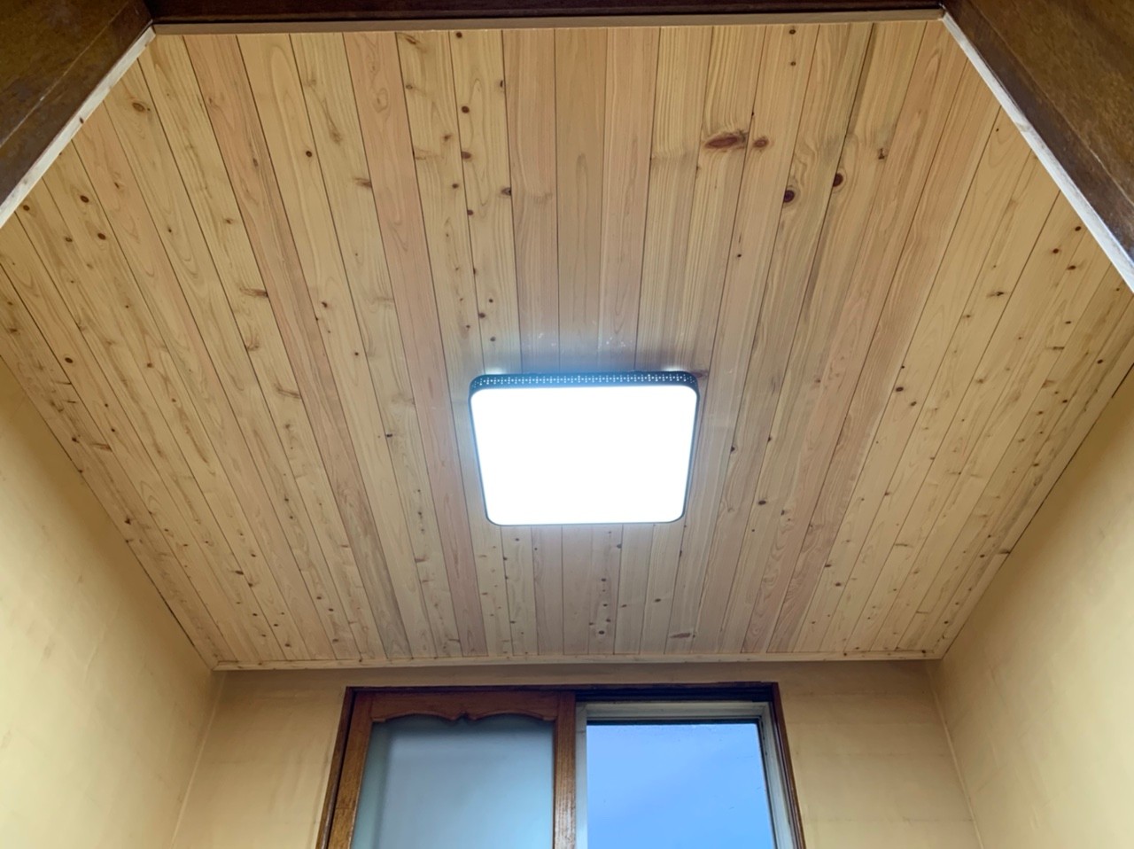 아래 사진은 천장에 루바를 모두 시공한 모습입니다.