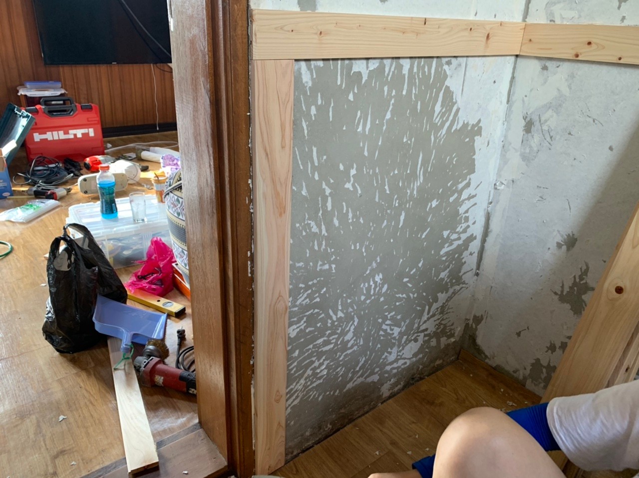 아래 사진은 걸레받이 시공하던중 실타카에 문제가 생긴 모습입니다.