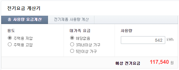 한달간 총 몇와트를 써느냐를 가지고 요금을 계산하는데, 총 사용량이 특정량을 넘어서면 크게 증가하는 구조다.
