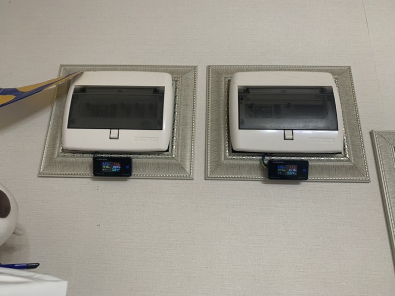 왼쪽이 1층 전기, 오른쪽이 2층 전기이다. 부득이하게 전원선이 약간 노출되었다.