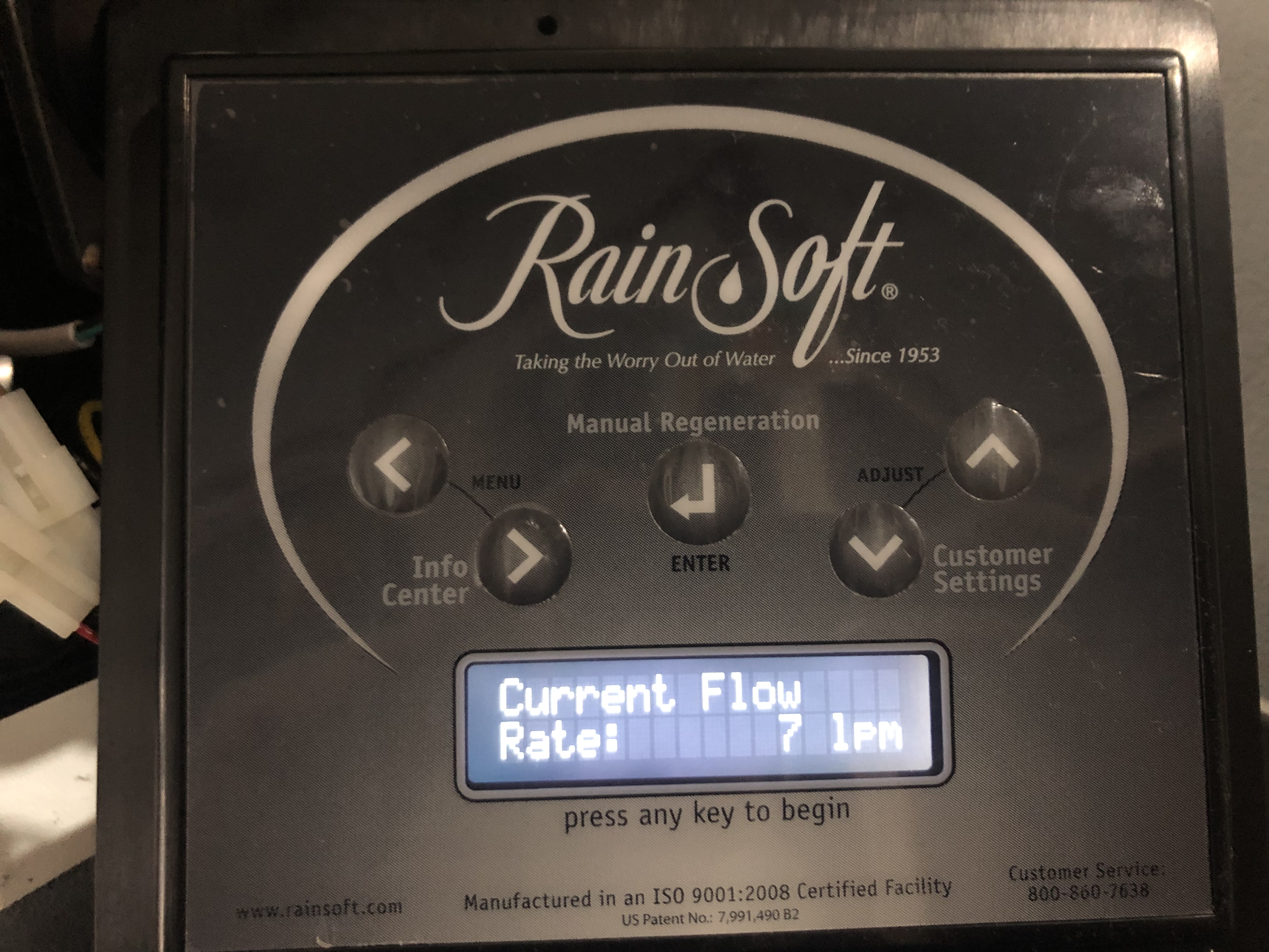 ↓ 센서 교체후 아래 화면처럼 7lpm 이라고 나타난다. 7lpm은 분당 7리터의 물이 사용되고 있다는 뜻.