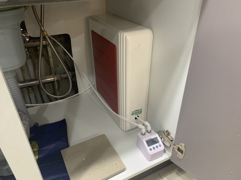 ↓ 언더싱크 케이스 설치, 필터 설치, 디지털 계량계(유량계) 설치